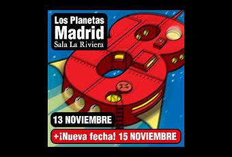 Tras agotar entradas para dos de sus fechas encontramos una nueva oportunidad de ver en sala a Los Planetas en Madrid.Tras el anuncio de los dos conciertos en noviembre nos esperan para poder ver a Los Planetas en su gira Super 8 de salas una tercera vez en Madrid.Con su actual gira podemos ver a Los Planetas en el aniversario de Super 8, en el caso de Madrid con triple fecha tras ampliar una fecha en La Riviera (15/11).