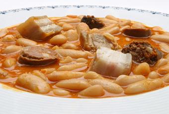 La receta se compone básicamente de fabes (alubias blancas), embutidos y cerdo. Su origen data del siglo XVI y una de las teorías afirma que está relacionada con el caussolet francés que pudo haber llegado durante la Edad Media a España a través del Camino de Santiago.