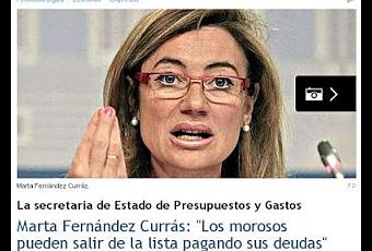 Que vengan estas amenazas de los mafiosos tiene la misma guasa a que vengan del gobierno, del cual me da igual el color que tengan, porque son unos auténticos ladrones. Es curioso, el gobierno legisla para que una empresa pague a un proveedor en un máximo de 60 días y ellos pagan cuando les da la gana. Pues bien he leído una curiosa noticia de la Secretaria de Estado de Presupuestos y Gastos, Marta Fernández Currás, "los morosos pueden salir de las listas pagando sus deudas". Y ahí lo deja la campeona.