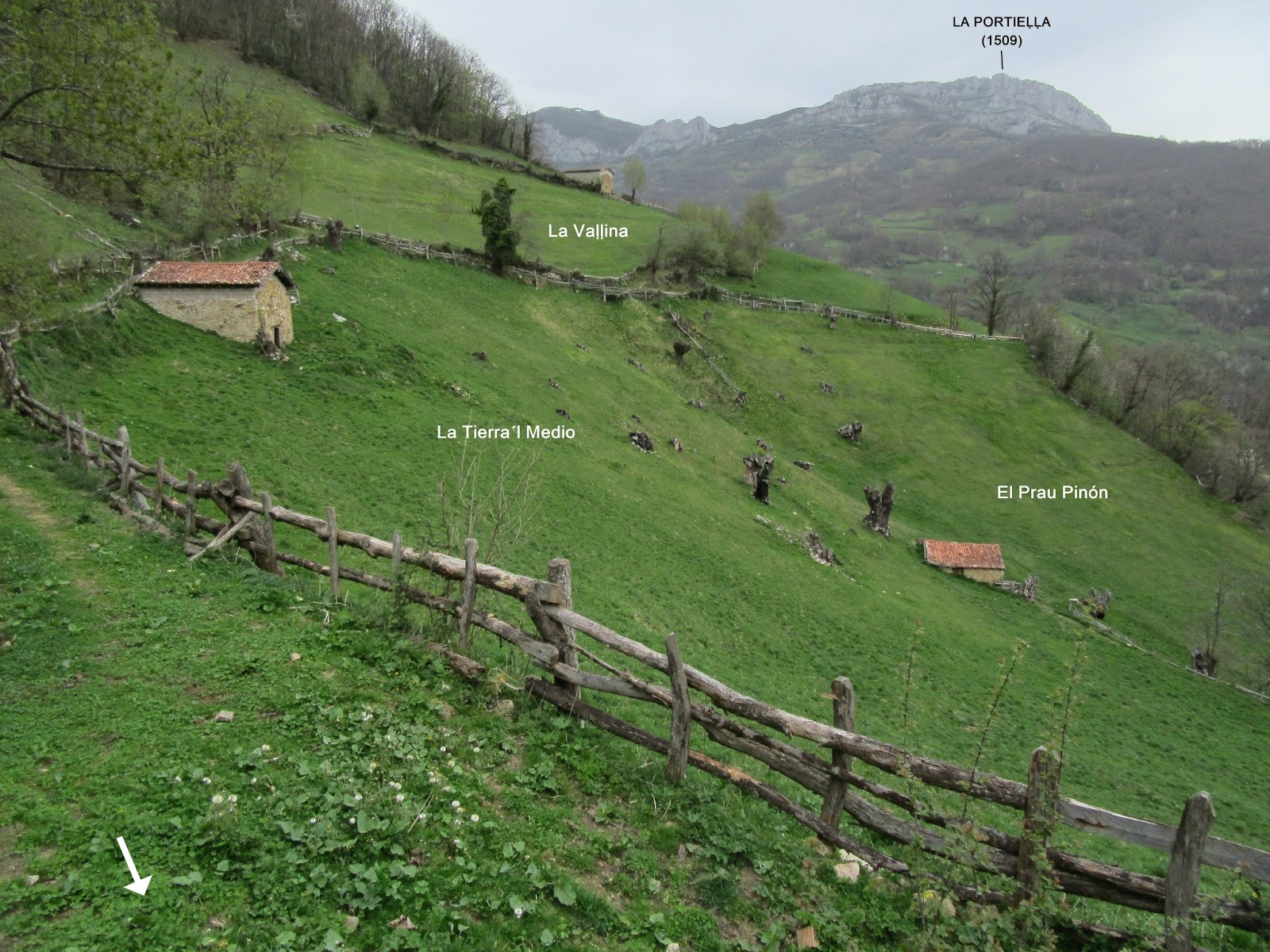 Avanzamos entre los praos de La Val.lina, El Prau Pinón y La Tierra´l Medio