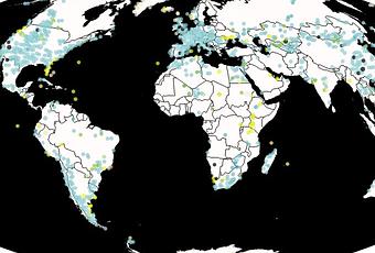 Según la base de datos de PaleoBiology, esta es la distribución conocida de los dinosaurios hasta la fecha de publicación de esta nota.El primer país es Arabia Saudita. En un artículo presentado en la revista PLoS ONE, nos presentan a los primeros restos de dinosaurio identificables. Se trata de una vértebra caudal de un titanosaurio avanzado y un diente marginal de terópodo abelisaurio. Estos restos datan del límite entre el Campaniano y el Maastritchiano, de hace unos 75 Ma y corresponden a la parte terminal del Cretácico. Los autores del estudio sugieren que de ser correcta esta identificación, se ampliaría el rango biogeográfico de estos grupos de dinosaurios al margen norte de Gondwana.