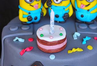 Tengo muchas más tartas por enseñaros pero esta ha sido muy especial porque llevaba mucho tiempo queriendo hacer una tarta de minions y aunque es de las ultimas que hemos hecho no quería dejar pasar mucho tiempo antes de subirla. La tarta nos la encargó Patricia para su sobrina Beatriz, un bizcocho de vainilla relleno de chocolate. Por los visto les debió gustar mucho a Beatriz y sus amigos porque no dejaron nada para que lo probasen los mayores. Felicidades Beatriz.