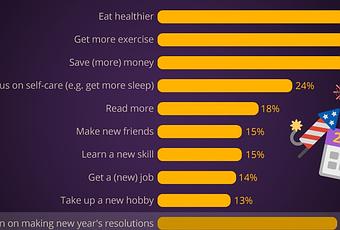 La siguiente imagen creada por Statista te muestra los propósitos más comunes que hacen las personas al iniciar un nuevo año.