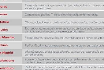 En el archipiélago balear, las mayores dificultades a la hora de cubrir ciertas posiciones se encuentran en el sector industrial, en el sector sanitario y en la automoción. Así, en la región hay problemas para cubrir vacantes de ingenieros/as industriales, electromecánicos/as, chapistas, operarios/as y oficiales, enfermeros/as y también administrativos/as con idiomas. Esto es así porque muchos de estos profesionales ya gozan de pleno empleo en el archipiélago y, por tanto, la mano de obra debe venir de fuera de las islas con los problemas que esto conlleva: dificultad para encontrar alojamiento por la escasez de viviendas, desplazamiento solo para campañas como la de verano, o por las condiciones salariales, ya que, aunque las compañías baleares ofrecen salarios según convenio, en ocasiones no son suficientes para el coste de vida del archipiélago (altos alquileres, sobre todo). En ocasiones, esta problemática redunda en la rebaja de los requisitos para cubrir las vacantes, con personal menos cualificado o con menor experiencia. En el archipiélago canario, los principales perfiles con más demanda y menos oferta son comerciales con experiencia y/o idiomas, dentro del sector servicios; enfermeros/as, para el sector sanitario, electromecánicos/as, en la Industria y perfiles IT, en general. Las principales razones que hacen que estos perfiles escaseen en las islas se encuentran en la cualificación que se les pide a estos profesionales, la alta demanda que hay en el archipiélago con respecto a la oferta, y en el caso del sector servicios, la falta de personal con conocimiento de otras lenguas. La banda salarial en la que se mueven estos profesionales es amplia: puede partir de los 16.000 euros brutos anuales para los comerciales con menos experiencia y formación y llegar a los 26.000 euros para los perfiles tecnológicos. En el archipiélago, estas profesiones prácticamente cuentan con pleno empleo. En la comunidad cántabra son dos los sectores potentes y en los que, en ocasiones, cuesta reclutar el perfil adecuado y ambos están vinculados a la Industria. Se trata del sector metalúrgico y del de la alimentación, sobre todo, la parte de la industria conservera de pescado. Los perfiles más demandados en el sector del metal son profesionales de oficio, soldadores/as, caldereros/as, fresadores/as, mecánicos/as… La necesidad de una formación específica (Formación Profesional) y la mayor demanda sobre la oferta hacen escasear estos profesionales que, en muchas zonas de la región, están desapareciendo. Algunas empresas están optando por formar a los trabajadores/as y que aprendan la profesión a través del propio manejo de la maquinaria. Además, a nivel más general, dentro del sector industrial, también faltan electromecánicos, personal de cambio herramental, técnicos de mantenimiento, programadores de control numérico o mecatrónicos… se trata de posiciones muy concretas, que cuentan con un número muy limitado de personas que finalizan la Formación Profesional en estas especialidades, y que casi todo tipo de industria -automoción, alimentación, metal, siderurgia…- suele necesitar. En el caso de la alimentación, también faltan posiciones especializadas que solo se consiguen a través de la experiencia en el puesto, como embotadores/as de bonito o fileteadores/as de anchoa. La retribución de estos perfiles es muy amplia dependiendo de si se trata de una FP de grado medio o superior y de las funciones que asuman, pero pueden ir desde los 18.000 euros brutos anuales para un recién titulado/a hasta los 35.000 de un profesional con experiencia. En el caso de la industria conservera, la banda salarial está entre los 16.000 y los 18.000 euros brutos al año. Pero, más que un tema salarial, el problema está en que en Cantabria no hay suficiente población con esta formación o experiencia y cuesta cubrir las posiciones o se hace necesario recurrir a candidatos/as de otras autonomías. Castilla y León
