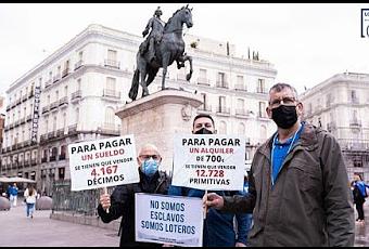 Frente al aumento de billetes de lotería vendidos, cabe observar los que se encargan de repartirlos. El gremio “Loteros en la lucha” tiene previsto concentrarse hoy frente al Teatro Real para reivindicar la subida de las comisiones que llevan 17 años congeladas. Se trata de una manifestación contra las administraciones del gremio. La organización espera que acudan 1.500 personas a manifestase frente al Teatro Real, lugar donde se desarrolla el sorteo más famoso del año. Por cada producto que venden ganan un cuatro por ciento de su precio. Una ganancia que consideran “insuficiente”, especialmente en la época de Navidad: por cada décimo de 20 euros los loteros ganan 80 céntimos. Dicha comisión lleva congelada desde hace 17 años: “El IPC ha subido a récord histórico, sube el sueldo mínimo, la cuota de autónomos, la luz… Pero a nosotros no nos llega para cubrir gastos”, denuncia Joaquín Monroy portavoz de Loteros en la Lucha. Y asegura que, durante el año, apenas cubre los gastos y difícilmente gana un sueldo digno: “Si la vida sube y yo sigo vendiendo lo mismo y saco lo mismo, los gastos te van comiendo”.