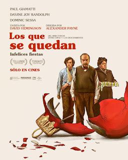 Fácil que la veas y, aunque aprecies el vaivén de momentos divertidos, tristes y emotivos, te deje un poco frío, pero no debería ser así, debería conmoverte. Para la desgracia de espectadores como yo este tipo cine está ya en desuso en Estados Unidos y pertenece casi ya a otra época, una en la que eran más habituales guiones en los que se cuidaba más a los personajes y se les confrontaba en situaciones más realistas. No es que "Los que se quedan" sea "realismo" porque además está filmada con una factura clásica que trata de ser una melodía hermosa para goce de tus sentidos, pero es verosímil, habla de personajes de carne y hueso, con problemas que no les es fácil compartir, con un pasado que les afecta en el presente, con cosas que contarse aunque sean casi polos opuestos: una jefa de cocina, un profesor poco popular y un estudiante problemático, los que se quedan en el campus durante las navidades mientras el resto vuelve a sus casas con sus familias. Una de esas comedia humanistas que ves fácilmente y que parece pasar por tu vida sin crearte un impacto rotundo, pero que dejan poso, que recuerdas con agrado y que, al cabo de un tiempo, reconoces que no te importaría volver a ver. Davine Joy Randolph consiguió el óscar a mejor actriz de reparto y además la película consiguió cuatro nominaciones más (mejor película, actor principal, guión original y montaje).