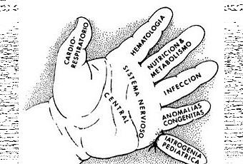Este dibujo resume de forma muy acertada las partes más importantes de la neonatología, de modo sencillo y claro. Todo está unido en el pronóstico neurológico, que es la base de la mano. Todos los dedos de la mano son necesarios para una funcionalidad normal.Incluso se representa la iatrogenia, que debe ser desechada.