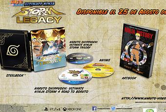 Naruto Shippuden: Ultimate Ninja Storm Legacy es una remasterización que saldrá para PS4 como para otras plataformas de las cuatro entregas de esta saga: Ultimate Ninja Storm 1, Ultimate Ninja Storm 2, Ultimate Ninja Storm 3 Full Burst y Ultimate Ninja Storm 4 Road to Boruto. En su versión física incluirá además caja metálica, un libro de arte de Naruto y un disco de anime adicional.