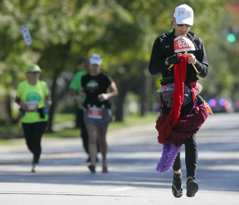 Récord mundial en distancia de bufanda elaborada al correr un maratón