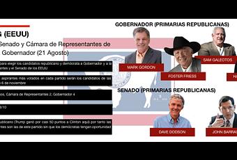 En cuanto a gobernador del estado hasta 4 candidatos podrían hacerse con la victoria hoy, sucediendo al popular republicano Matt Mead que no se puede presentar a la reelección por limitación de mandatos. El tesorero del estado Mark Gordon sería el favorito en los sondeos aunque seguido muy de cerca en las encuestas por dos millonarios locales, Foster Friess y Sam Galeotos y por la abogada Harriet Hageman, la más escorada hacia la derecha de los candidatos.