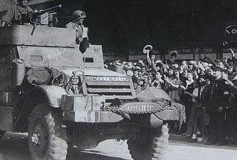 La compañía de antifascistas españoles de la División Acorazada del general Leclerc liberó el ayuntamiento de París y detuvieron al comandante de los nazis antes de retomar una participación en la II Guerra Mundial que finalizaría en mayo del año siguiente. Los soldados de “La Nueve” fueron los primeros en entrar en París para liberarlo de la ocupación nazi. Y lo hicieron bajo dos banderas tricolores, la de la Segunda República española, su país, y la de Francia, que, finalmente, acogió como paisanos a los supervivientes de esta legendaria unidad del Ejército de Liberación, al acabar la Segunda Guerra Mundial. “Alrededor de setenta miembros de La Nueve, como se conocía a la Novena Compañía [del Tercer Batallón del comandante Joseph Putz] de la División Leclerc, fueron los primeros en llegar, a las nueve de la noche del 24 de agosto de 1944, al Ayuntamiento de París –recuerda Eduardo Bayona en el reportaje ‘La Nueve, cuando los republicanos derrocaron al fascismo’, en Público–, donde se atrincheraron miembros de la resistencia y ciudadanos, para liberarlo. En los vehículos de las fuerzas aliadas podían leerse rótulos como ‘Guadalajara’, el primero en llegar, ‘Ebro’, ‘Belchite’, ‘Teruel’, ‘Brunete’ o ‘Jarama’, nombres de batallas de la guerra civil que los republicanos habían pintado en los capós. Unas horas antes, esta fuerza de combate, la única de las tropas de liberación en la que el castellano era la lengua vehicular, tras haber sido fundada casi exclusivamente con españoles (144 de 160), fue de las primeras en entrar en la ciudad. El general nazi y su estado mayor fueron capturados por un extremeño (Antonio Gutiérrez), un aragonés (Antonio Navarro) y un sevillano (Francisco Sánchez) que lograron romper el cerco defensivo y subir hasta el primer piso del hotel Meurice, donde estaba instalado el alto mando. Sin embargo, tuvieron que retenerlos hasta que un oficial francés formalizara el arresto. Cuenta Evelyn Mesquida, en “La Nueve”, cómo “antes de salir de su guarida, el general se quitó su reloj y se lo regaló a Gutiérrez, agradeciéndole haber respetado las leyes de la guerra”. Para entonces, llevaban tres semanas en Francia (habían zarpado el 31 de julio de Southampon), a donde habían llegado por la playa de La Madeleine, en Normandía, dentro del dispositivo iniciado el 6 de junio, el Día D. Pocos días después se enfrentaron con la Wehrmacht en la batalla de Ecouché, sufriendo las primeras bajas. A partir de entonces, actuarían como avanzadilla de las tropas.
