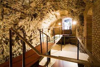 Se trata de un sistema de muros y bóvedas que datan, según los estudios arqueológicos practicados, de época romana. En el entorno de estos sótanos se encuentran dos de los restos romanos de mayor importancia hallados en la ciudad, las termas romanas y las cisternas de la red de distribución de agua de los sótanos de la Delegación de Hacienda. Según los especialistas en el tema, formaban parte de la red de suministro de agua de Toledo; su funcion era trasladar el vital elemento a las Termas, hecho confirmado porque la galería central continúa en la galería que hay bajo el hipocausto.