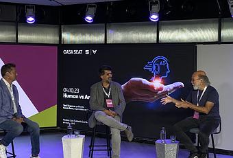Las nuevas tecnologías y la inteligencia artificial tendrán en los próximos años muchas más capacidades que las actuales y conducirán a una nueva era de oportunidades en las que también habrá que afrontar retos importantes. El publicista Toni Segarra, uno de los más reconocidos a nivel internacional, en representación de la inteligencia humana, y Genís Roca, uno de los máximos expertos en transformación digital, en representación de la inteligencia artificial, se confrontaron este miércoles en un combate dialéctico donde, moderados por Lluís Soldevila, pusieron sobre la mesa cuestiones como la aplicación de la Inteligencia Artificial en las aulas, la revolución que supondrá para el mercado laboral y el debate ético sobre su aplicación. En el debate también se abordó el riesgo de las nuevas dictaduras digitales, el poder de las empresas tecnológicas, los deepfakes o la manipulación masiva.