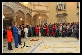 En primer lugar, los Reyes nos esperaban en un patio del Palacio y nos han saludado personalmente a cada uno de los representantes , a continuación hemos pasado al Patio de los Borbones , donde el rey Felipe , junto a la reina nos ha dirigido unas palabras de saludo y agradecimiento por la gran labor de solidaridad realizada por cada una de las entidades
