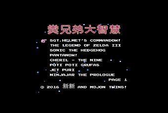 Tras meses de desarrollo y numerosas pistas en redes sociales, llega la última mojonada para NES. Se trata del cartucho multijuego 'Mojon Twins Gran Sabiduría - 31 en 1 Real Game!', un homenaje a esas tardes de Reyes patrocinadas por el bazar del barrio, siempre dispuesto a colocarnos uno de aquellos míticos cartuchos pirata chinos con decenas de juegos repetidos.Fieles a su sentido del humor, en el cartucho multijuego -lo llamaremos así para abreviar el nombre- arranca con una de las melodías más míticas de las películas de Bud Spencer al tiempo que da paso a un menú en el que encontraremos algunos nombres conocidos que han sido adaptados para la consola de Nintendo, así como otras creaciones especialmente desarrolladas para la ocasión, incluyendo algún viejo conocido de estas páginas, como 'Sonic Mal'.