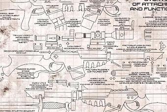 Este diagrama técnico de un rifle laser de las Escher y sus opciones es una creación de Carl R.Johnston y la verdad es que esta muy bien.Muestra las opciones que pueden acoplarsele.