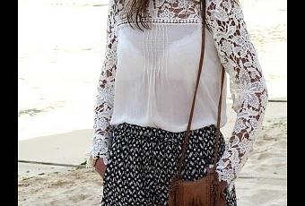 La primera noche me puse total look de Zara, excepto el bolsito con flecos que es de Top Shop.