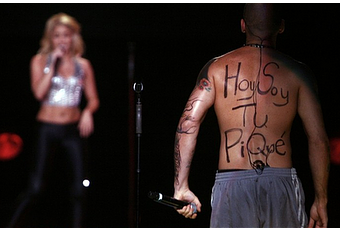 Shakira tiene un "nuevo PiquéLuego de la desmentida a las versiones de ruptura entre la cantante y el futbolista del Barcelona, la colombiana encontró un "reemplazante" en un show en Puerto Rico. Al menos, sobre el escenario... La cantante cerraba su gira mundial ante el público de San José, y su compañeroRené Pérez "Residente", del grupo Calle 13, bromeaba con Shakira escribiéndose en la espalda "Hoy soy tu Piqué".De todos modos, Shakira declaró que sigue enamorada de Piqué, y solamente se trató de una broma que puso en el centro de la escena al defensor catalán.