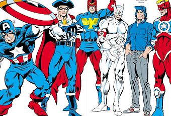 Esta curiosa imagen se la debemos a Jose Prim y es de los seis primeros Capitanes America que hubo en el cómic. No soy mucho de Marvel, solo cosas sueltas y solo conozco a tres de los que salen: Al primero (Obviamente), al segundo (Y solo por imágenes, no sabía nada mas) y al cuarto,que de ese curiosamente se mas porque hace unos años revelaron su nombre, William Burnside.