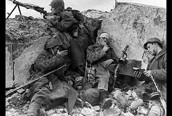 Soldados del Ejército Rojo plantan la bandera soviética en Kerch. La amenaza sobre la retaguardia de Manstein es patente.Con gran ansiedad, el Jefe de Estado Mayor y el Jefe de Operaciones se han situado junto a Manstein ante el mapa. ¿Hay que interrumpir la batalla por Sebastopol en ese preciso momento? ¿No es eso exactamente lo que los soviéticos esperaban conseguir con sus desembarcos en Kerch?