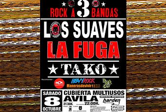 Gran noche de Rock la que agrupa a tres grandes bandas nacionales como son Los Suaves, La Fuga y Tako. Los tres grupos se ha unido para ofrecer varios recitales que harán las delicias de los amantes del Rock nacional. Por ahora hay firmados conciertos en Ávila y Onda (Castellón). Más información y compra de entradas en la página de La Agencia.