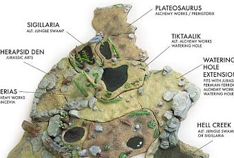 Jurassic Arts es una marca de Atlanta (Estados Unidos) que nace con la vocación de retomar las modelos de resina de escenas prehistóricas que popularizó la firma Aurora en la década de los 70. Las "Prehistoric Scenes" eran maquetas de escala 1/13 con bases entrelazadas que se conectaban a presión y posibilidades de jugabilidad infinitas. Hay que decir que los modelos originales nunca fueron precisos científicamente, pero si muy divertidos, y Jurassic Arts persigue este objetivo respetando el legado original de Aurora. Esta estética retro se puede observar a simple vista en las ilustraciones que acompañan a sus maquetas. Como muestra, su nueva serie "Triassic Terrors", que incluye un dicinodonto, a tiktaalik y a diversos representantes de la vegetación triásica.