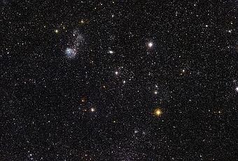 "La Gran Nube de Magallanes se encuentra en la constelación de Dorado (el pez espada), en las declinaciones más australes del cielo del sur y en buenas condiciones para las observaciones desde los observatorios del ESO en Chile. Es una de las galaxias que forman el grupo local que rodea la Vía Láctea. A pesar de las enormes distancias a escala humana, la LMC tiene menos de un décimo la masa de nuestra Galaxia y se extiende sólo 14000 años-luz en comparación con alrededor de los 100.000 años-luz de la Vía Láctea. Los astrónomos se refieren a ella como una galaxia enana irregular. Su irregularidad, combinada con su barra central prominente de estrellas sugiere a los astrónomos que interacciones de marea con la Vía Láctea y las galaxias compañeras de grupo local, la Pequeña Nube de Magallanes, podría haber distorsionado la forma de una espiral clásica hasta evolucionar a su forma moderna, más caótica, escriben los expertos del ESO en un comunicado de prensa.