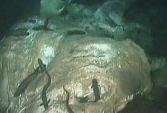 La mayoría de la fauna en el alta mar depende de una llovizna de partículas de animales en descomposición y heces. Esta nieve marina es de baja calidad alimentaria como se podría esperar que sean los muertos y las heces. De vez en cuando, en aguas profundas se encuentra comida en forma de una gran caída de alimentos, un cadáver casi completo. Grandes caídas de alimentos ocurren con la muerte de una ballena. Pero estos grandes alimentos naturales se encuentran raramente. Sólo se han documentado nueve cadáveres de vertebrados en el fondo marino.