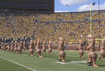 Los tiranosaurios bailarines de la University of Michigan Marching Band