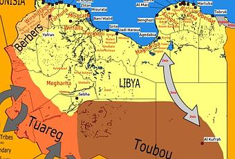 A esto se uniría el enfrentamiento contra los Tebu en el suroeste libio, tras más de cien años de paz entre ambas tribus gracias a una cuerdo –el Midi Midi, “amigo amigo”–, sellado a finales del siglo XIX, por el cual ambas se repartieron las rutas comerciales y de contrabando de la región. Con este tratado, los tuareg vendrían a dominar las rutas hacia Argelia y Mali, mientras los Tebu se quedaban con las de Níger y Chad. La guerra estallaría a raíz de la competencia por el control de los recursos petrolíferos de la zona, así como del oasis de Ubari, punto geoestratégico clave para el control de las rutas por el desierto. En agosto de 2014 las tensiones alcanzarían su punto álgido, iniciándose los combates en el oasis de Ubari, y llegando a Sebha, capital del Fezzan, un año después. La primera chispa de este conflicto la prendería una decisión del Consejo Nacional de Transición al dar el control de las fronteras del sur a los tebu como recompensa por haberse posicionado mayoritariamente contra Gadafi en el proceso revolucionario. Asimismo, los tebu se harían con el control de la plataforma petrolífera de el-Shehara, privando a los tuareg del acceso a sus beneficios a la vez que monopolizaban las rutas de contrabando, gracias al apoyo desde Bengasi. Todo ello, unido al incremento de los controles fronterizos y de seguridad por parte de actores como Argelia, alteraría las rutas tradicionales y haría colisionar los intereses de ambas tribus, rompiendo el pacto tradicional y las relaciones de poder tribal asentadas durante décadas. A pesar de todo, en noviembre de 2015 los tuareg recuperarían el control del el-Shehara y el conflicto se estancaría, con Ubari como centro del mismo.