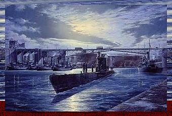 Bucólica imagen de un U-Boot haciéndose a la mar al caer la noche.