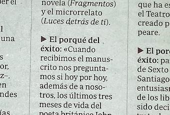 Cuando todavía uno se encuentra sumido en esa especie de sueño que ha sido el acto homenaje que, precisamente hemos hecho el 19 de julio de 2014 al poeta romántico en su tumba del cementerio protestante de Roma, el destino me tenía reservada otra fantástica noticia a mi regreso a Madrid. Una noticia en la que comparto espacio con personas que uno tiene en alto aprecio como Julián Rodríguez de la editorial Periférica, y como no, con mi editora Noemí Trujillo que siempre vela por una buena parte de mis sueños literarios, y que, gracias a su gran trabajo y empeño por sacar adelante el proyecto literario de Playa de Ákaba, ha conseguido que el ABC Cultural del pasado sábado se haya fijado en ella, e incluido en la amplia sección dedicada a Los otros best sellers, mi novela Los últimos pasos de John Keats. Un proyecto que aprovecho para decir que no es solo mío, sino de Noemí Trujillo, Anamaría Trillo, Lorenzo Silva..., y por supuesto, de los nueve valientes que me acompañaron el pasado fin de semana por las calles perdidas de Roma, porque si algo distingue a Manuela, África, Mayte, Teresa, Daniel, Alfonsina, Pablo, Juan y Anamaría es la ilusión por una novela que es tan suya como mía.