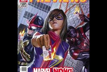 En la imagen vemos a Ms. Marvel, Nova y Spiderman (los miembros adolescentes de la actual alineación de Vengadores) quemando sus carnets de membresía, posiblemente renunciando a ello por alguna razón.