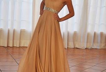 También es muy bonito el vestido corto en color turquesa y corte princesa, decorado con bordados en oro. También es de Bgomeworld y su precio de 499 euros.