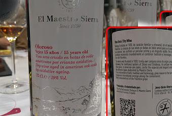 Conocido es que los vinos de Jerez no tiene cosecha. No son crianzas, no son reservas, no ponen fecha de caducidad, a lo sumo un 'consumir preferentemente antes de', ...pero cuánto tiempo lleva esta botella aquí en la tienda, en el súper, ...?Algunas bodegas comienzan a poner las fechas de embotellado, como la Manzanilla 'La Guita', del Grupo Estevez. Eso sí, el año de fundación, el 'Established since', y logotipos varios con el año de fundación de la solera o de la propia bodega, no hacen más que confundir al personal, documentos fechados en el siglo XV ya indican que aquí ya se elaboraba vino, bla, bla...Últimamente me da por hacer fotos a las contraetiquetas de los vinos de Jerez, aquí una muestra de las últimas, en la cata de esta semana en Vinos y Maridaje, El Puerto de Santa María:1. Oloroso El Maestro Sierra 15 años.