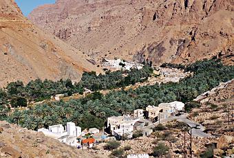 Vamos siguiendo el camino -muchos tramos del cual están asfaltados- que no presenta demasiada dificultad. Es necesario cruzar el río en varias ocasiones pero baja poca agua y lo hacemos sin ningún problema. En las partes más bajas del wadi corre un agua limpia, transparente, de color esmeralda. El camino se va haciendo de cada vez más estrecho con cuestas infernales, mientras suplicamos a todos los dioses para no encontrarnos con ningún vehículo de cara. Vamos atravesando las diferentes aldeas rodeadas de palmeras y de pequeños huertos, y parando varias veces para disfrutar del magnífico paisaje o intercambiar algunas palabras con los lugareños.En la zona hay varias opciones de rutas para los aficionados al senderismo. En el último pueblo se inicia un trekking de 27km que se puede hacer en unas 14 horas.No nos marchamos de Wadi Tiwi sin bañarnos.