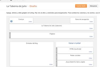 Los widgets pueden ser vistos/colocados/eliminados en la sección Diseño de nuestro panel de Blogger. Aquí encontramos un esquema de como está diseñado nuestro blog -que puede ser modificado desde el diseñador de plantillas- junto con los widgets que se visualizan en este momento en nuestro blog.