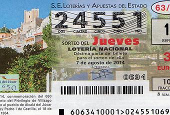 El próximo día jueves 7 de Agosto, Loterias y apuestas del Estado ha sacado a la venta décimos conmemorativos del 650 aniversario del villazgo de Alcalá del Júcar, en el cual, además de la foto de nuestro pueblo, se dice que :