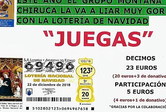 Ya esta a vuestra disposición nuestra Lotería de Navidad , participaciones a 5 euros mas 1 de donativo y decimos a 20 euros mas 3 de donativo, destinados a paliar nuestros gastos de las diferentes actividades que realizamos este 2018LOS ESTABLECIMIENTOS DONDE SE PUEDE ADQUIRIR A LOS QUE LES AGRADECEMOS SU COLABORACIÓN DESINTERESADAMENTE SON LOS SIGUIENTES:NOVELLANA: Droguería RíosVALDREDO: Bar CofreOVIÑANA: Restaurante El Café Cai Milio La TiendinaSOTO DE LUIÑA: Tejidos y confecciones Casa Emilio Estanco SotoSAN MARTÍN DE LUIÑA: Bar Café San Martín Mesón asador Casa EduardoLAMUÑO: Bar CendanTambién la podéis conseguir en los miembros de la junta directiva de nuestro grupo y en las diferentes salidas y actividades que realizamos."MUCHAS GRACIAS POR VUESTRA COLABORACIÓN Y MUCHA SUERTE"
