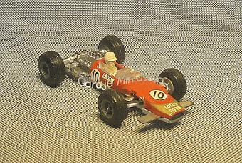 Dicho auto de carrera es una réplica del que usaba el piloto británico Graham Hill. Se puede ver su nombre en un calco del lado derecho de cockpit. Justamente del lado izquierdo le falta un pedazo del acrílico, que simula el parabrisas envolvente.