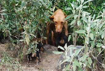 Todo el sufrimiento le ha pasado factura, estaba muy asustada y bastante delgadita, en cuanto la hemos rescatado nos ha lamido las manos y ha movido el rabito...