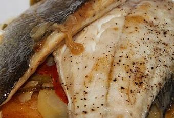 Introducimos en el horno a unos 180º C, hasta que quede toda la verdura bien hecha. Ya depende cada horno yo aproximadamente lo tengo unos 40 minutos.Mientras tanto preparamos un caldo de pescado, con las cabezas y las espinas de la lubina y con el puerro cortado a trocitos. Añadimos un poco de sal y agua. No hace falta poner mucha puesto que es para preparar un poco de caldo, para regar el pescado.Si lo hacemos en una cazuela pequeña ponemos agua justo para cubrir el pescado. Dejamos unos 20 minutos.Una vez esté cocida la verdura colocamos encima los filetes de lubina y salpimentamos. Regamos la lubina con aceite de Oliva y por último regamos todo con el caldo.Introducimos de nuevo al horno de 10 a 15 minutos.Servimos.