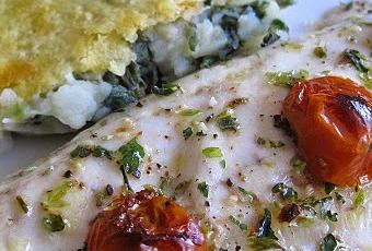Ingredientes para 2 personas1 lubina (sin espinas ni cabeza)Orégano, perejil y ajo secoTomates secos en conserva (opcional)Sal y pimientaPastel de espinacas2 patatas1 nuez de mantequilla1 diente de ajo picado1 manojo de espinacas frescas (200gr)Queso ralladoSal y pimientaPastel de espinacasHacemos un puré de patata. Hervimos las patatas peladas y las machacamos con la mantequilla un poco de sal y pimienta.Limpiamos las espinacas y las sofreímos en una sartén con un poco de aceite. Picamos el ajo y mezclamos el puré de patatas con las espinacas.Colocamos todo en una molde para horneo, espolvoreamos con queso y gratinamos.