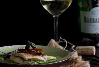 La receta elegida es ésta, una receta elaborada con lubina y panceta ahumada a la que he puesto unos espárragos verdes a la plancha para acompañar. Una combinación perfecta de sabores que marida a la perfección con el vino.