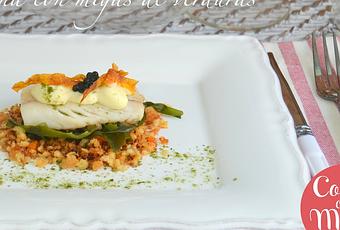 Pero si no tenéis algas o wasabi en casa, no os preocupéis. La lubina con las migas de verduras y un poquito de alioli también es maravillosa.