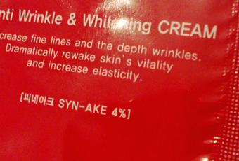 La primera es Syn-Ake, de Secret Key. Esta crema me ha gustado. De hecho, mi primera impresión fue muy, muy buena. Hidrata mucho, se absorbe rápidamente y deja una sensación muy agradable en la piel. La usaba de noche y realmente creo que mejora la textura del cutis.Sin embargo, como soy bastante cazurra y pasota, mi sorpresa llegó cuando, buscando información sobre esta crema, descubrí que estaba hecha con veneno de serpiente. Y, sí, ya sé que hay control y no pasa nada; pero... la verdad es que eso de hacer cremas con serpientes no me ha gustado nada de nada. Yo paso de comprarla por ese motivo. Llamadme tonta, pero soy así. Con todo, os doy mi sincera impresión. Otro defecto que le veo es el olor. No me ha gustado mucho. Es ligero, pero no es de mi agrado.