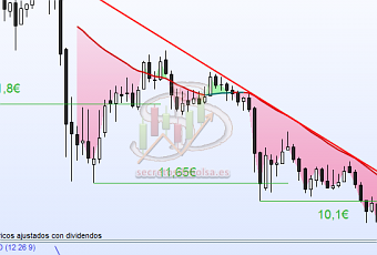 Tras romper esa directriz el precio continuó ascendiendo, pero antes de llegar a la resistencia de los 13,6€, tras alcanzar los 13€ se dio la vuelta. En principio todo apunta a que puede ser un recorte a modo de pullback a la directriz bajista. En el caso de que la cotización pierda los 11,20€ estarían sonando las primeras alarmas de que una subida pudiera no llegar a fraguarse en el valor y que estaríamos ante un movimiento lateral del precio.