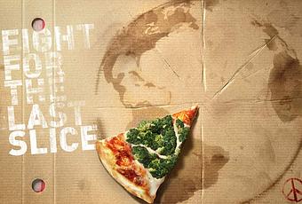 Pizza & Love es un restaurante de Barcelona que siempre se ha mostrado muy comprometido en su comunicación. En estas gráficas, tituladas "Lucha por el último pedazo" se hace una comparación entre el momento en el que queda sólo un trozo de pizza encima de la mesa y dos lugares del mundo, el Amazonas y el Ártico, que están siendo explotados por la mano del hombre. Muy buen trabajo de Contrapunto Barcelona