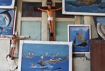 (tauromaquia de toda la vida aplicada por los pescadores de Lamalera, en la isla indonesia de Lambata, al leviatán marino... capilla, matadores, cuadrilla y desolladero... No siempre es una batalla de la que vuelvan victoriosos)