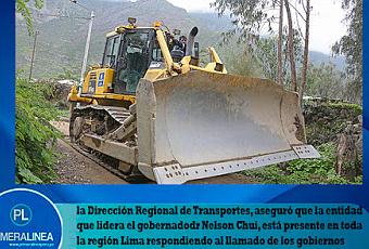 El Gobierno Regional de Lima (GORE LIMA)-inició la rehabilitación de las vías de comunicación interrumpidas por el deslizamiento de piedras y lodo en distintos puntos de la provincia de Cajatambo. La información la dio a conocer la Dirección Regional de Transportes, luego de verificar las labores desplegadas por las maquinarias pesadas en la zona.Los trabajos comprenden la limpieza de los caminos que constituyen acceso a diversos poblados de esta parte altoandina de la región Lima, así como descolmataban el cauce del río para evitar los desbordes e inundaciones que pueden afectar los terrenos de cultivos.